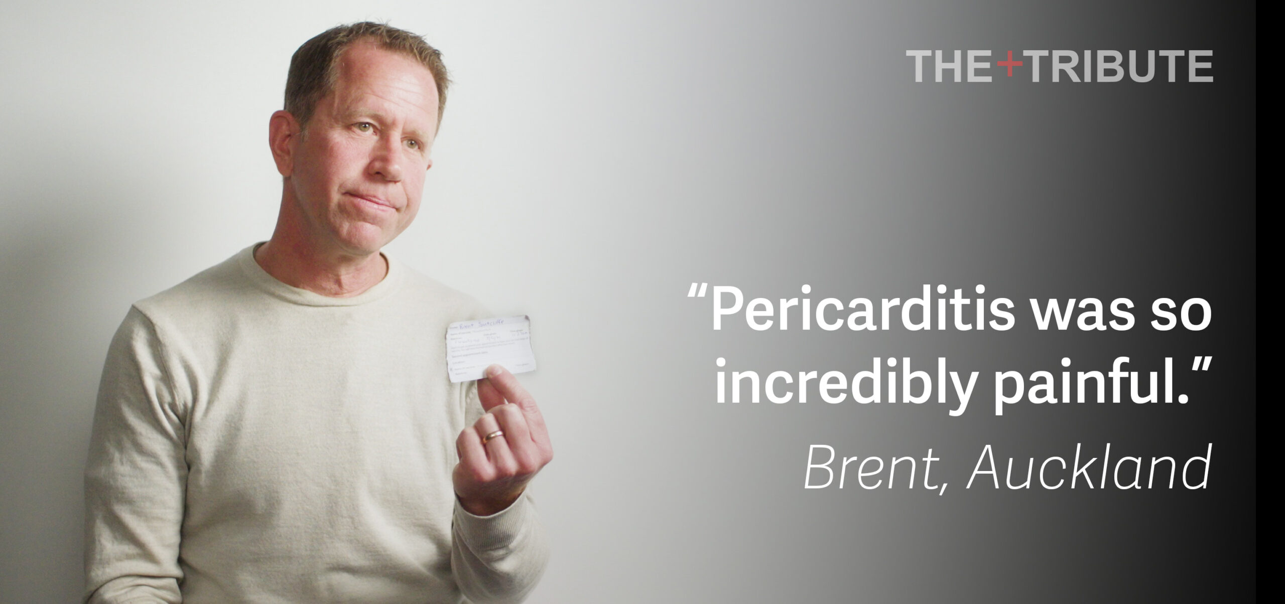 The second episode of The Tribute features Auckland father Brent, who describes developing pericarditis following his first dose of the Pfizer Covid-19 vaccine in 2021, and the subsequent impact on his family, health and trust in public institutions.
